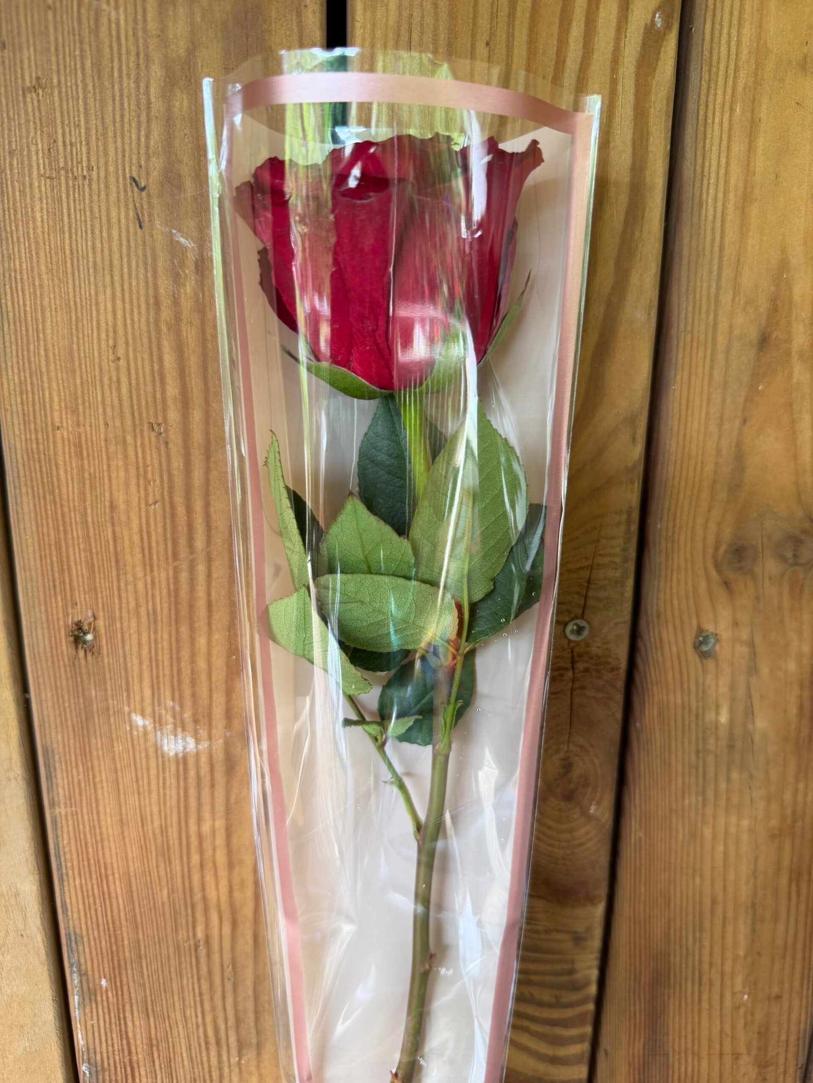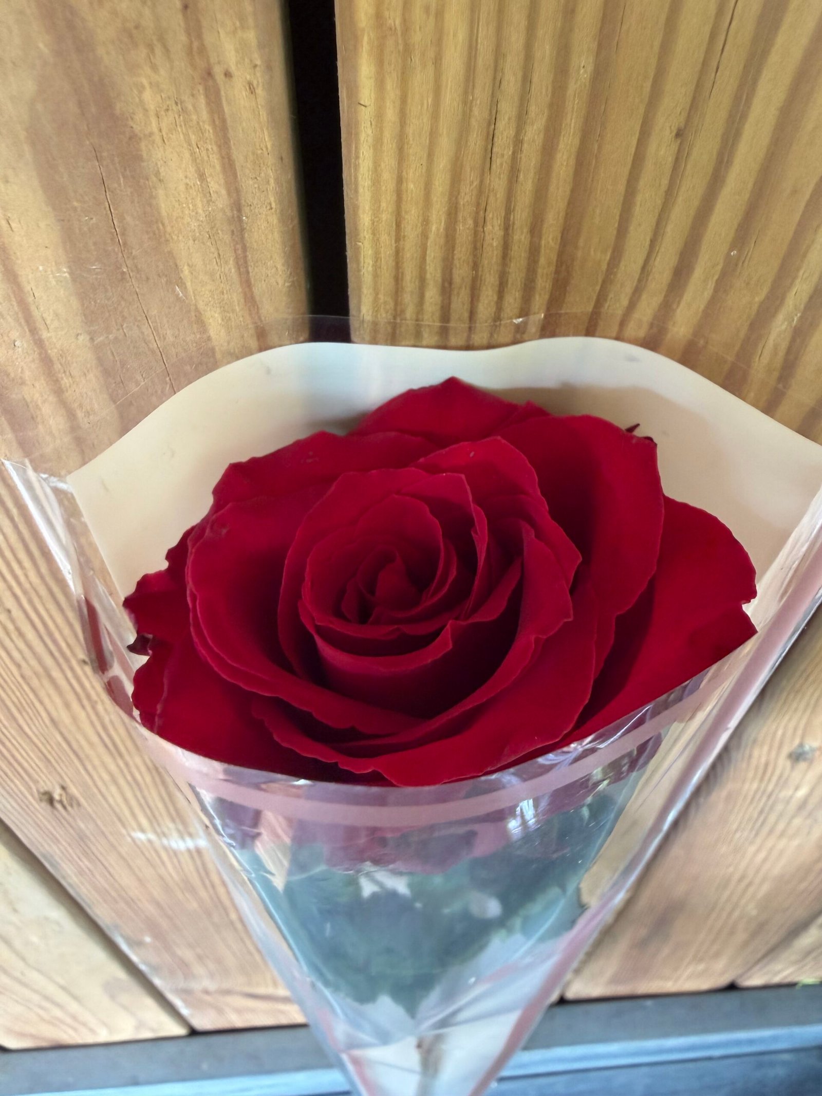 Une rose rouge d’exception délicatement accompagnée de gypsophile vaporeux, présentée dans son écrin de fête.